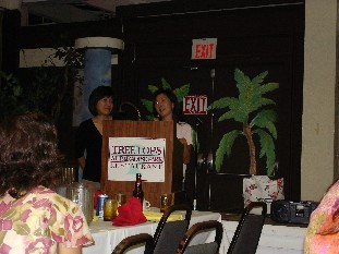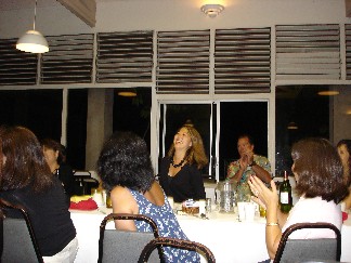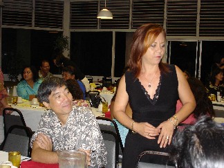 Patti is obviously having a better time than the others at her table. What was that in her glass? |